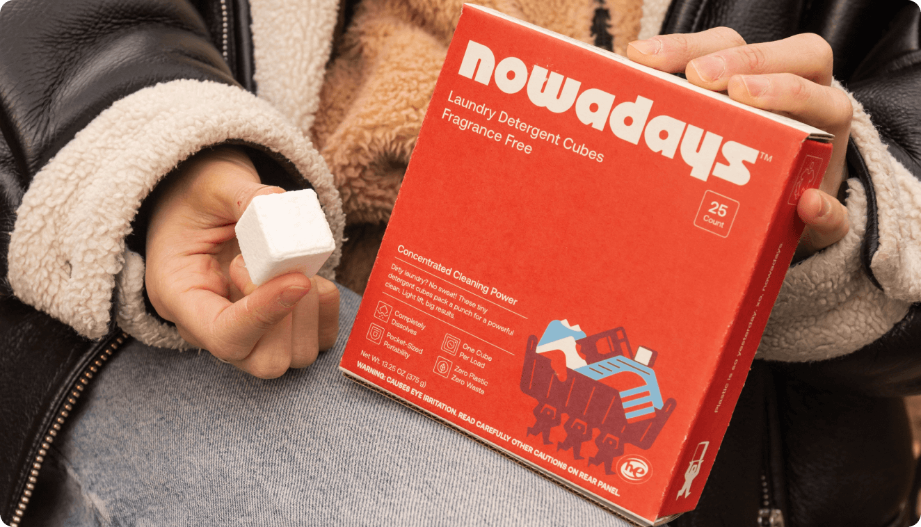 Nowadays is a line of concentrated and compact cleaning cubes designed to make life easier without sacrificing performance. Drop the cube and go. No measuring. No plastic.